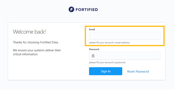 1. Access the Portal login page at portal.fortifieddata.com