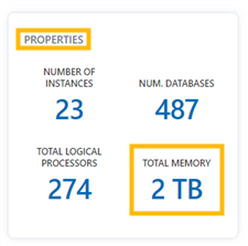 The total amount of memory across the user's enterprise is displayed on the "Properties" card in the "Properties" section on the "Instances Overview" page.