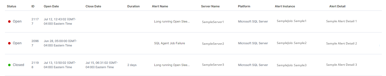 The goal of the Alerts - Details page for alerts is to provide detailed information about the alerts occurring across your servers