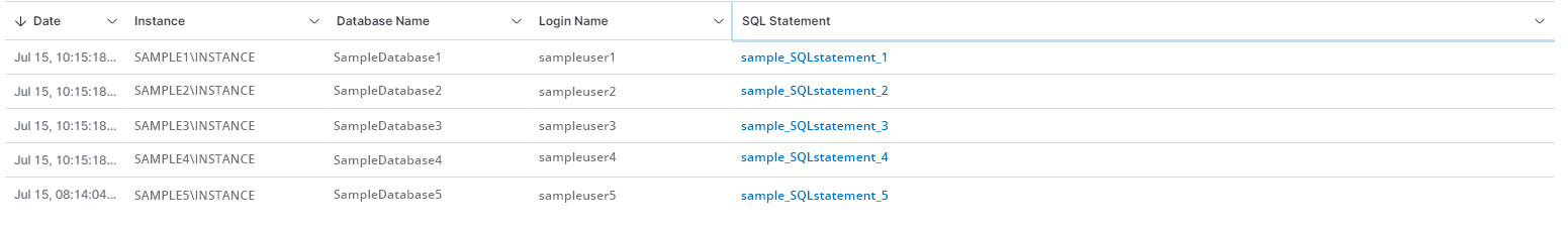 The Audit - Details page displays details about audit events occurring including the date, instance, database, login, and SQL statement.