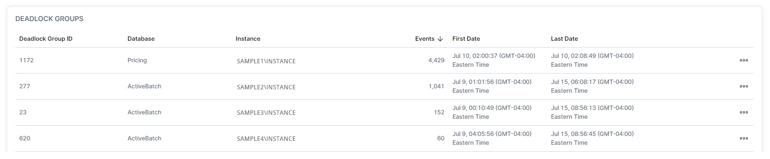Deadlock Groups are displayed in the lower section of the Deadlocks - Overview page.