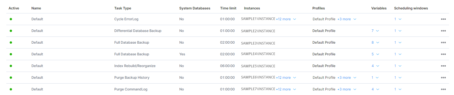 The goal of the Template Management page for database configuration is to provide details about the configuration of database maintenance tasks