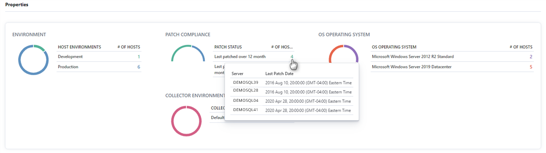 3. Click on a number to view the list of hosts, and the last patch date and time of the hosts. Click on the number again to collapse the list.
