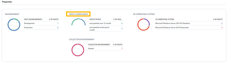 2. The "Properties" section near the bottom of the page displays patch compliance and the number of hosts in relevant to the patch within the "Patch Compliance" section.