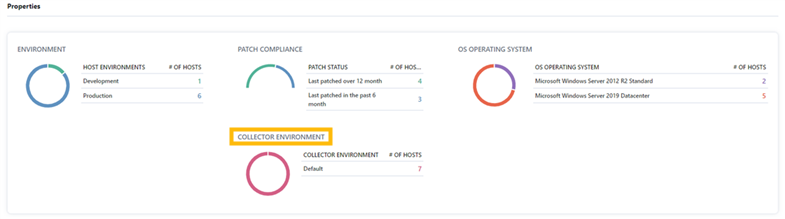 2. The "Properties" section near the bottom of the page displays collector environments and the number of hosts within those environments.