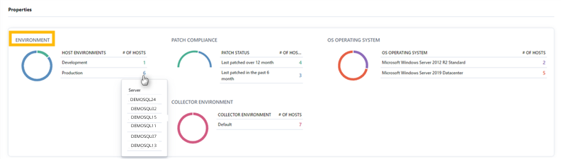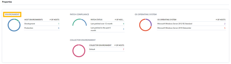 2. The "Properties" section near the bottom of the page displays host environments and the number of hosts in those environments.
