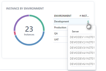 The "Instance by Environment" card in the "Properties" section of the "Instance Overview" page displays instance environments and the number of instances in each environment.