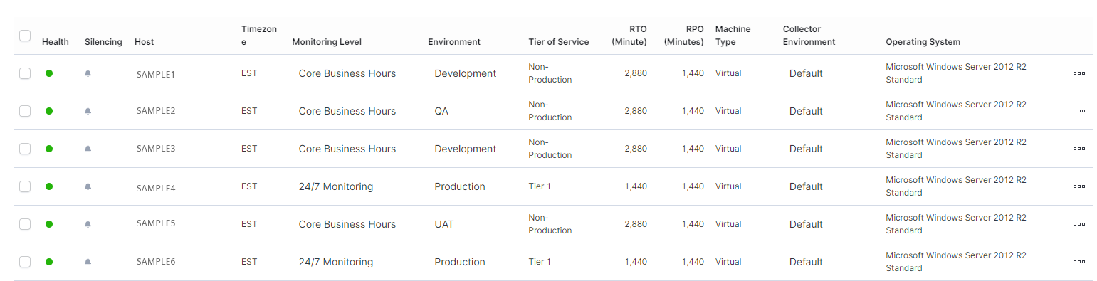 In the Lists page, users can view a list of all hosts/instances/databases/applications as well information relevant to each host/instance/database/application listed.